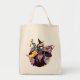 The printing came out very well, better than I had anticipated. The natural color fabric is sturdy with strong seams and comfortable handles. This tote fits easily over my shoulder. As it is filled, the bottom flattens out--very cool! I would buy this product again. This grocery tote holds a lot of groceries! The image quality was very good. The colors were a little darker than I had expected. The darkness may have been due to printing on a natural color fabric rather than on white. The cat design is attractively centered on the tote. The spirit of the design is very lively, just as it appears on the Zazzle website.