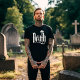 My 11 yo wore adult XL (5’7” 165#). The 8yo is small framed. She wore adult small and tied it in the back. Grandma wore adult large with long sleeve shirt underneath. Tall girl adult medium. Dark haired male adult large. Good quality dark Heather gray, Gildan brand shirt. -it was next up from basic choice and cost about $20 per shirt. Not too thick or thin. Washed and dried well, no major shrinkage. Not see-through. Can wear a bra under it fine. Screen print is just as shown and well done, front and back.