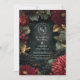 A dramatic and elegant wedding design featuring deep burgundy dahlias, golden leaves, and rich autumn foliage against a textured black backdrop. Perfect for couples seeking a moody, romantic, and luxurious atmosphere for their fall or winter wedding celebration