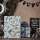 This Gothic Floral French Blue Rocking Horse Pattern Wrapping Paper features hand-drawn illustrations of a vintage wooden rocking horse with French blue detailing, roses in matching blues and creams, wildflowers, leaves, black bats, spiderwebs and twinkling stars, all against an elegant French blue background. Ideal for Gothic baby showers or any occasion celebrating baby boy during the spooky Halloween season.