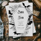 Embrace the enchantment with this Gothic Wedding Save the Date Invitation, perfect for a Halloween wedding. This modern, elegant design combines a boho-dark aesthetic with a moody, spooky vibe, capturing the essence of an October celebration. Intricately adorned with bat and spider web motifs, alongside delicate floral elements, this invitation showcases a striking gray-and-black color palette. Set the tone for your special day with a unique blend of haunting beauty and timeless elegance.
