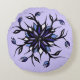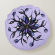 Gothic floral pillow with a cool weird mandala illustration - digitally colored ink drawing of a strange flower with reptile monsters with sharp teeth in black, violet and blue colors.