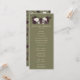 This Gothic Floral Olive Green Wedding Program Card features an elegant hand-drawn black ink floral, skulls and roses design with intricate cross-hatching on a rich olive green background. The back features an elegant pattern with these same elements with gradient pinstripes. Personalize with your ceremony details, names, and wedding date for a cohesive, moody aesthetic. Perfect for gothic weddings, dark romantic themes, and sophisticated alternative celebrations.