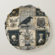 Gothic Floral Skull and Raven Pattern Round Pillow