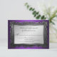 RSVP Reply Cards with a Gothic theme featuring a print of an ornate metallic style gray frame image on the front, with a purple to black gradient, and the RSVP date and reply information over light gray. Great for Halloween, Gothic, or themed weddings.