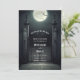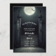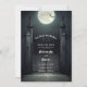 A spooky old cemetery gate with a full moon and bat set is just the right mood for this gothic save the date invitation. Perfect for announcing your upcoming marriage and making sure people save the date. Moody and dark for a gothic or Halloween wedding.