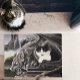 A striking gothic fantasy painting featuring a black and white tuxedo cat nestled within the stone wings of a towering gargoyle. Perched high above a misty landscape, the gargoyle overlooks a dark medieval castle as bats circle the stormy sky. This atmospheric artwork blends mystery, magic, and feline charm, making it perfect for lovers of gothic fantasy art, and enchanted cat designs.
