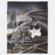 A striking gothic fantasy painting featuring a black and white tuxedo cat nestled within the stone wings of a towering gargoyle. Perched high above a misty landscape, the gargoyle overlooks a dark medieval castle as bats circle the stormy sky. This atmospheric artwork blends mystery, magic, and feline charm, making it perfect for lovers of gothic fantasy art, and enchanted cat designs.