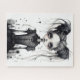 Jigsaw puzzle with gothic girl in black and white.