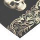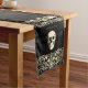 Decorate your dining room or kitchen with our Gothic Skull Personalized Table Runner. Design features a white skull with golden ornaments on a black background. Personalize with your name .
