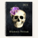 Stylish and Chic Gothic Floral Skull Personalized Notebook . Design features a white skull accented with a beautiful purple roses on a black texture background. Personalize with your name and year