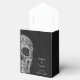 Gothic macabre grunge texture black and white printed cool half skull head wedding A Deadly Thank You favor box. Spooky, creepy, evil, sinister. Custom, trendy, unique, modern, scary Halloween style design. Image copyright Marg Seregelyi Photography.
