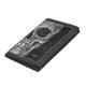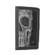 Gothic macabre black and white grunge texture print cool half skull head photo wallet. Spooky, creepy, evil, sinister design. Personalize the name. Trendy, unique, modern, scary Halloween style. Image copyright Marg Seregelyi Photography.
