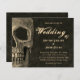Gothic half skull vintage sepia hallowedding budget invitation budget flat card. Fun, spooky Halloween Till Death Do Us Part script on texture print background on back. Image copyright Marg Seregelyi Photography.