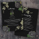 A Gothic Halloween script wedding design with black roses and hanging vines. A Halloween design that uses black and dark botanical florals along with vintage script calligraphy typography. A stylish Gothic design ideal for Halloween wedding themes. A unique black roses wedding itinerary program design. Matching wedding invitations and other stationery items are also available.