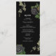 A Gothic Halloween script wedding design with black roses and hanging vines. A Halloween design that uses black and dark botanical florals along with vintage script calligraphy typography. A stylish Gothic design ideal for Halloween wedding themes. A unique black roses wedding menu design. Matching wedding invitations and other stationery items are also available.