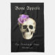 Gothic Floral Skull Personalized Kitchen Towel is the perfect addition to any kitchen looking for a spooky touch of elegance this Halloween season. Design features gothic floral skull on a black background with the words " Bone Appetit " The skull is accented with beautiful purple roses. Personalize design with your name and custom text to make it truly one-of-a-kind . Makes a great gift for anyone who loves a touch of dark elegance in their home decor.