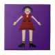 This awesome tile features a digital art image of a creepy but beautiful Halloween Vampiress. The female vampire has long spiky black hair and is wearing a red dress adorned with a spider and decorated with black skulls, stars, diamonds and pair of black swans. She has bright red lips covered in lipstick and a sultry smile and long white fangs. She also has black fingernails, a blood red bracelet of rubies and black high heel boots with gold bows on them. Her arms are open welcoming you for an evil embrace.