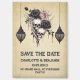 Designed with fans of goth, dark, and vintage aesthetics in mind, this magnet appeals to those looking to infuse their wedding stationery with a touch of the macabre. The intricate details of the skull and black roses, paired with the vintage lamp, give the magnet a sophisticated yet slightly eerie quality. Whether you're planning a Halloween wedding, a Victorian-inspired event, or a gothic wedding, this save-the-date magnet introduces the theme with mystery and flair. For anyone seeking unique save the date magnets, it stands out with a distinctive visual appeal that captures the essence of a gothic romance.