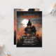 A bold Halloween invitation featuring a gothic haunted mansion under a blood-red sky—perfect for setting a thrilling party mood.