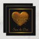 Black and gold with elegant rich gold trim gothic heart wedding save the date announcement.