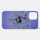 Gothic heart iPhone case with an abstract whimsical vector illustration of a broken heart which is fixed with a band-aid in purple, white and black. The heart is surrounded by swirling plants and a reptilian monster with four eyes.