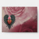Gothic Heart with Bloom and Wings. The heart shines in vibrant red and is surrounded by an elegant golden border. The heart is decorated with a delicate cross pattern that underscores its meaning and symbolism. A delicate pink flower sits atop the heart, adding a touch of romance and softness. Majestic wings, painted in dark gray, spread out from either side of the heart. The wings are detailed, with fine lines and shading that give them a slightly gothic feel and convey the impression of protection and freedom.