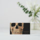 Human half skull head face close up Gothic grunge tattoo artist professional business cards. Cool brown green black creative texture design. Name and profession on front and rest of information on back. Unique, scary, spooky, cool, trendy, modern vintage style. Image copyright Marg Seregelyi Photography.