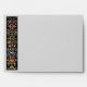 This greeting card envelope has vintage gothic art from an antique illuminated manuscript with colorful flowers and scrolling leaves on a black background on the front and is lined with black on the inside
