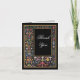 Vintage gothic art from an antique illuminated manuscript, colorful flowers and scrolling leaves on a black background. Inside it has a black cover and customizable text with manuscript elements on the inside. Personalize it with you own greeting text and choice of lettering styles on the front and inside.