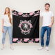 Gothic Love | Pink and Black Skeleton Heart Floral Fleece Blanket