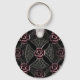 A medieval round, kaleidoscope pattern of an iron cross and rose on a key chain.