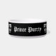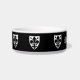 White shields on black with Fleur De Lis symbols surround this cat bowl for your prince or princess cat. Add your royal pet's name to it. If you need to enlarge the text for shorter names, you can do it when you "customize". Click the text, scroll down, click the "+" sign or writer a larger number in the font box.