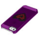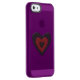This awesome phone case features a beautiful digital image of a gothic black and red heart with ragged edges that shine with an ethereal light and appear to be melting. The background is purple.