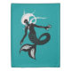 Dark mermaid double sided duvet cover with a digital illustration depicting a beautiful black sea creature - half-fish, half-woman figure with black skin, glowing eyes, white hair and beautifully curled tail. This weird siren has a necklace of fish skeletons and seashells.