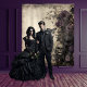 Step into a world of dark enchantment with our gothic wedding backdrop, part of the hauntingly beautiful collection that embraces the allure of the mysterious. This exquisitely designed features a scenic background, showcasing darkly mysterious setting, complete with a skull, soft purple roses, and a moth. The rich and evocative color palette of antique cream, soft black, and purple adds a touch of old-world charm, lending an air of sophistication to the entire suite. Choose our gothic wedding backdrop and embark on an extraordinary journey into the realm of the extraordinary. Created by Simply Farmhouse Press.
