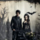 Step into a world of dark enchantment with our gothic wedding backdrop, part of the hauntingly beautiful collection that embraces the allure of the mysterious. This exquisitely designed features a scenic background, showcasing darkly mysterious setting, complete with a gothic haunted mansion and soaring bats. The rich and evocative color palette of antique cream and soft black adds a touch of old-world charm, lending an air of sophistication to the entire suite. Choose our gothic wedding backdrop and embark on an extraordinary journey into the realm of the extraordinary. Created by Simply Farmhouse Press.