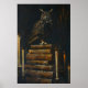 Gothic Owl on Vintage Books Painting Printable Poster