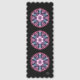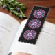 This bookmark was inspired by stained glass windows in gothic cathedrals. It features my original digital abstract art in pinky red, purple and blue with a hint of yellow on a black background. This is repeated up the length of the bookmark. The design is the same on the reverse with my TR logo in the bottom right hand corner.