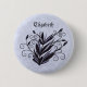 Personalised gothic button with a floral swirl and flourish plant - nature lover botanical art in black and purple.