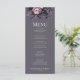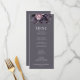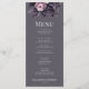 Set the tone for your reception with this gothic plum floral wedding menu, featuring rich mauve and deep purple blooms on a moody charcoal-gray background. Designed to complement dark, romantic, gothic, and celestial-inspired weddings, this elegant menu card adds refined drama to your table setting. The clean typography ensures your courses are easy to read while maintaining a sophisticated aesthetic. Fully customizable, you can personalize the menu text, names, and wedding date to match your celebration perfectly. Ideal for formal dinners, candlelit receptions, or moody autumn and winter weddings. Coordinates seamlessly with the matching Gothic Plum Floral wedding stationery suite.
