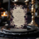 Set the tone for an unforgettable night with this gothic red rose and lace Halloween party design. Featuring dramatic crimson roses, vintage black lace details, and elegant script on a parchment background, this darkly romantic style is perfect for haunted mansions, masquerade balls, or spooky-chic gatherings. A blend of vintage glamour and gothic charm, it’s the perfect way to welcome guests to your Halloween celebration in style.