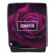 Personalized backpack with a close-up image of a gothic looking purple magenta rose. A dark and mysterious style.
