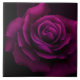 A ceramic tile with a close-up image of a gothic looking purple magenta rose. A dark and mysterious style.