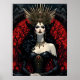 AI generated art of a beautiful gothic queen dressed in black with red and gold details