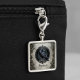 Set the tone for a moody aesthetic with this personalized raven zipper pull charm. It features a detailed black crow illustration framed by an ornate lace border rendered in a vintage silver and charcoal palette. This is a unique way to customize a favorite bag or a thoughtful gift for a dark academia enthusiast.