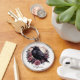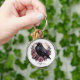 Set the tone for a moody Victorian vibe with this personalized metal keychain. This design features a midnight black raven nestled among vintage rose illustrations rendered in a dusty pink and charcoal palette. It is the perfect way to celebrate a special occasion or a thoughtful gift for a bird lover.