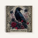 Set the tone for a dark academia aesthetic with this personalized spiral notebook. The visual features a striking black raven illustration perched amidst moody crimson roses and intricate vintage filigree patterns. It is the perfect way to capture daily reflections or a thoughtful gift for an aspiring poet.