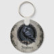 Set the tone for a moody, sophisticated aesthetic with this personalized raven keychain. The design features a detailed black crow illustration framed by an ornate Victorian border and vintage floral damask patterns rendered in a charcoal and silver palette. It makes a thoughtful gift for a gothic literature lover or a unique custom accessory for a birthday celebration.
