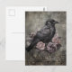Set the tone for a moody and sophisticated message with this Victorian noir postcard. This striking design features a detailed black raven perched atop vintage-style roses rendered in a muted sepia and charcoal palette. It is the perfect way to send a heartfelt note to a gothic art lover or to use as unique macabre decor.